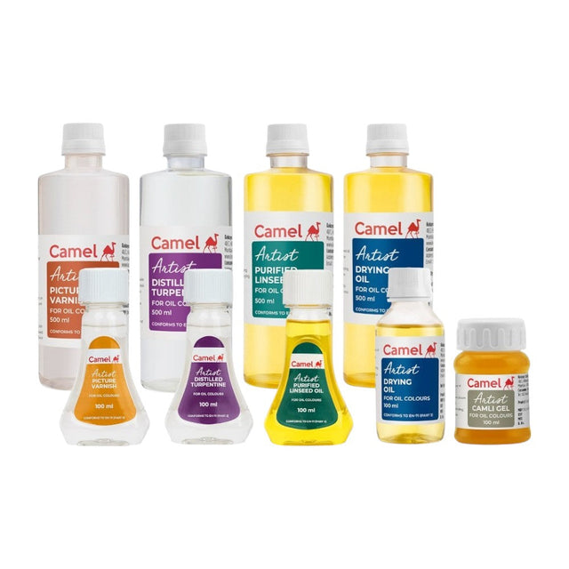 Enhance your oil painting process with our range of premium Camel Oil Mediums. These products are specifically formulated to improve paint flow, extend drying time, and protect your artwork. Whether you're starting with the right surface prep or finishing with a protective varnish, Camel Oil Mediums offer excellent results.