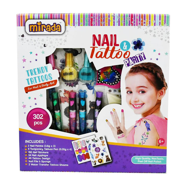 The Mirada Nail & Tattoo Party kit is perfect for young fashionistas aged 6 and up who love expressing their style through nail art and temporary tattoos. Ideal for sleepovers, parties, or just creative fun with friends!